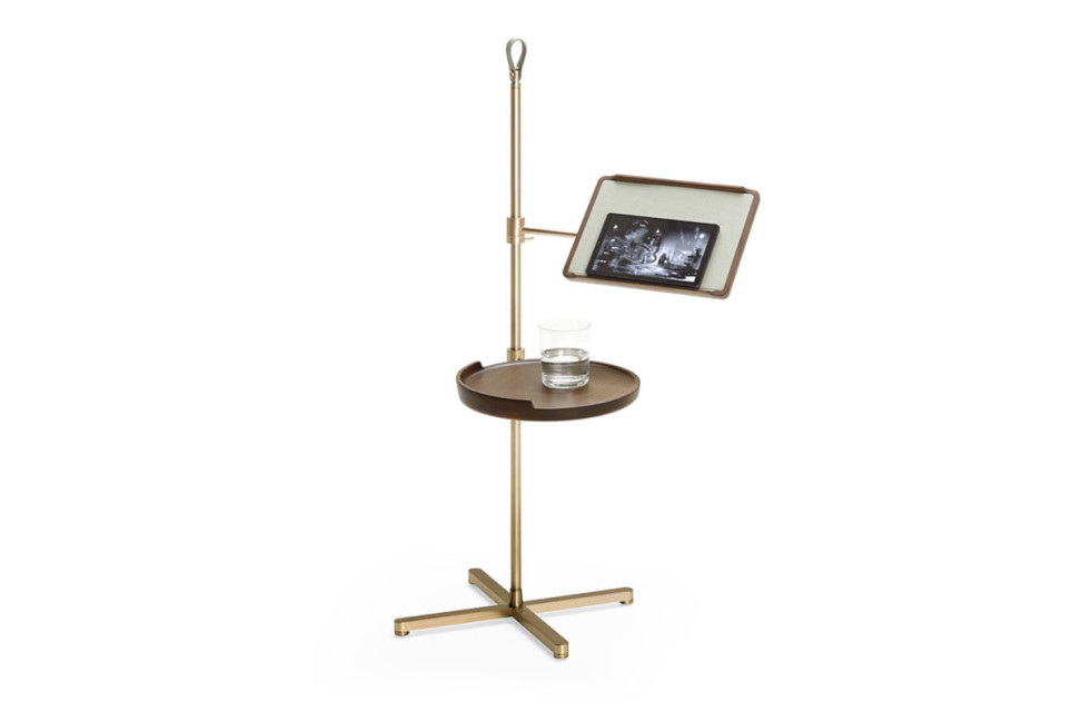 Le table basse Galimede présente une structure en acier nickelé – dans les finitions noir, or, or rose et bronzé – avec deux pratiques plateaux en bois massif de noyer américain réglables en hauteur. Le premier a un plateau rond et se déplace de manière circulaire, tandis que le second, rectangulaire, a le fond recouvert de cuir et a un mouvement orthogonal par rapport à l'axe. Le table basse Galimede est l'élément de mobilier parfait pour un moment de détente ou de travail. De plus, il est facilement déplaçable grâce à une pratique poignée en cuir positionnée en haut de la structure.