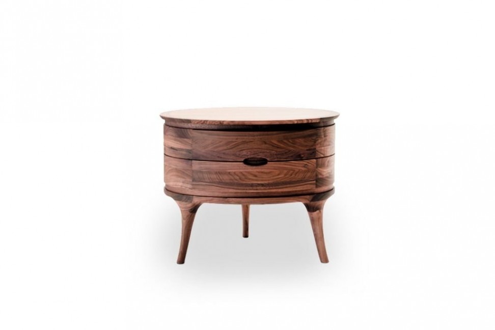 La table de nuit Ainda, en offre expo dans notre showroom, est entièrement réalisée en bois massif de noyer américain et présente deux tiroirs pratiques qui permettent de ranger à l'intérieur des objets de différents types.