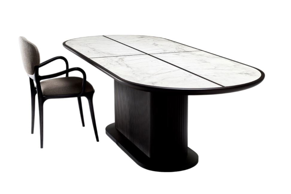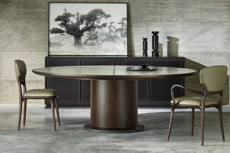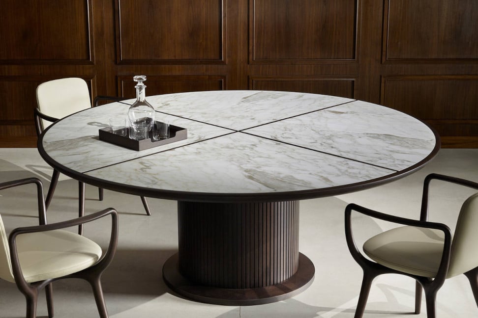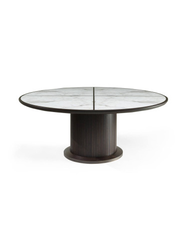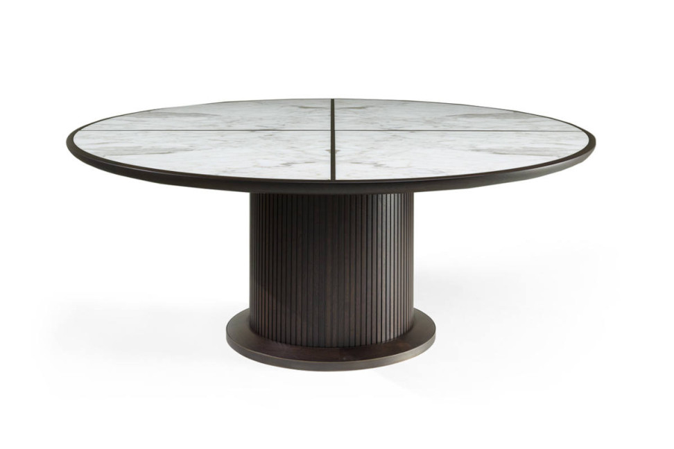 Conçu par Roberto Lazzeroni, la table Full est adaptée tant aux espaces destinés au contract qu'aux environnements de restauration. Le design élégant est donné par une structure en bois massif de noyer américain, avec un piètement revêtu de bandes de bois massif de noyer américain et un cadre en laiton brun. La table Full est disponible avec un plateau en marbre ou en bois, dans différentes finitions.