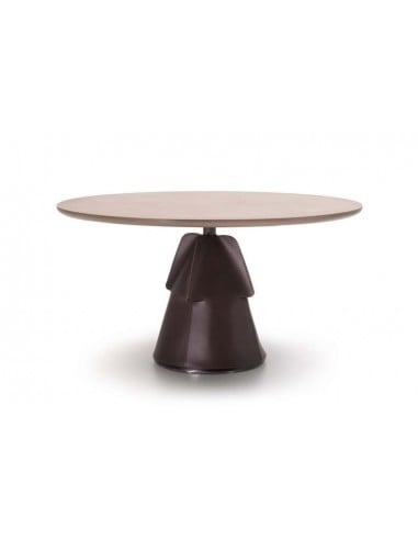 Disponible en différentes tailles, la table DS-615 est composée d'une base en métal recouverte de cuir avec des coutures croisées réalisées à la main et un plateau rond, carré ou ovale, en métal ou en marbre, dans les différentes finitions de la collection.