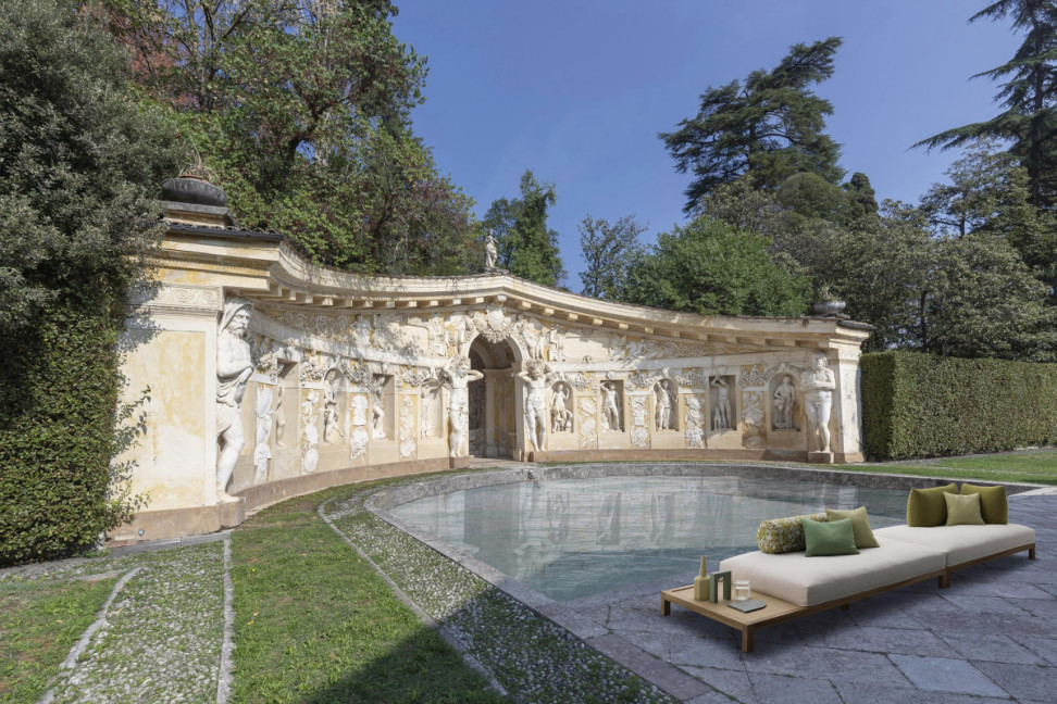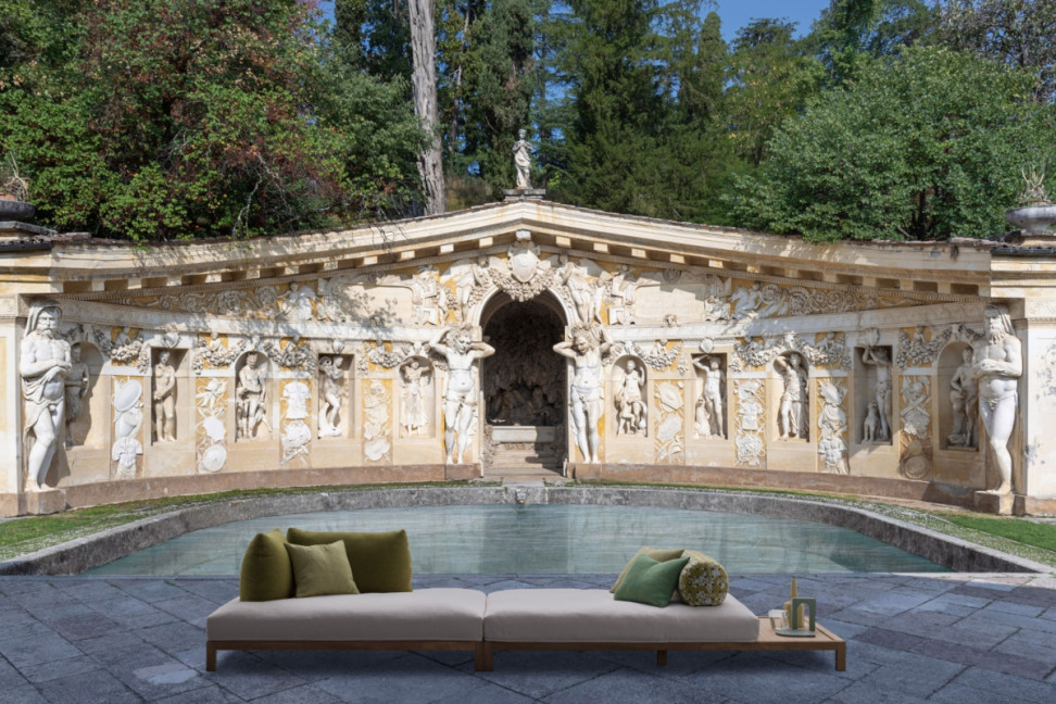 Le canapé d'extérieur Haneda de Désirée, créé par le designer Marc Sadler, représente un système de sièges inspiré du traditionnel tatami japonais.
