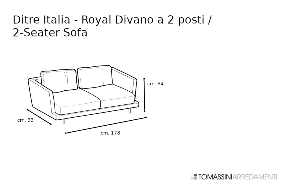 Le canapé Royal est disponible en plusieurs dimensions, notamment dans la version linéaire suivante :