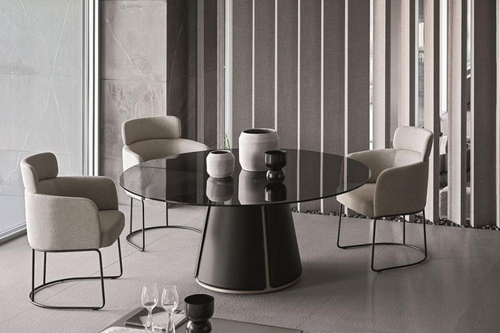 La table Claire est l'une des nouveautés signées par la marque italienne de mobilier Ditre Italia et présentées au Salone del Mobile de Milano 2019.Née de l'esprit créatif du designer Daniele Lo Scalzo Moscheri, Claire est capable d'apporter personnalité et élégance au salon grâce à la combinaison gagnante de matériaux précieux et de pureté formelle. En effet, à la fois le plateau et la base reprennent la simplicité de la forme du cercle et la valorisent à travers les matériaux utilisés : le plateau rond en cristal transparent ou fumé, à l'apparence légère et raffinée, est soutenu par une base en métal avec un précieux revêtement en cuir ou en simili cuir, qui ne couvre pas l'ensemble de la structure mais laisse entrevoir de fines parties transversales et une partie périmétrique au fond de la base. Ces deux derniers détails mettent en évidence la circularité récurrente dans l'ensemble de la structure et contribuent à harmoniser la base de la table tant avec le plateau qu'avec les autres éléments qui composent la collection éponyme, comme par exemple la chaise.