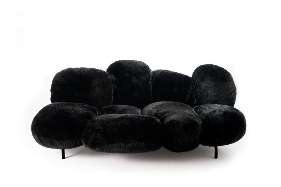 Le canapé Cipria est disponible uniquement avec un revêtement en fausse fourrure.