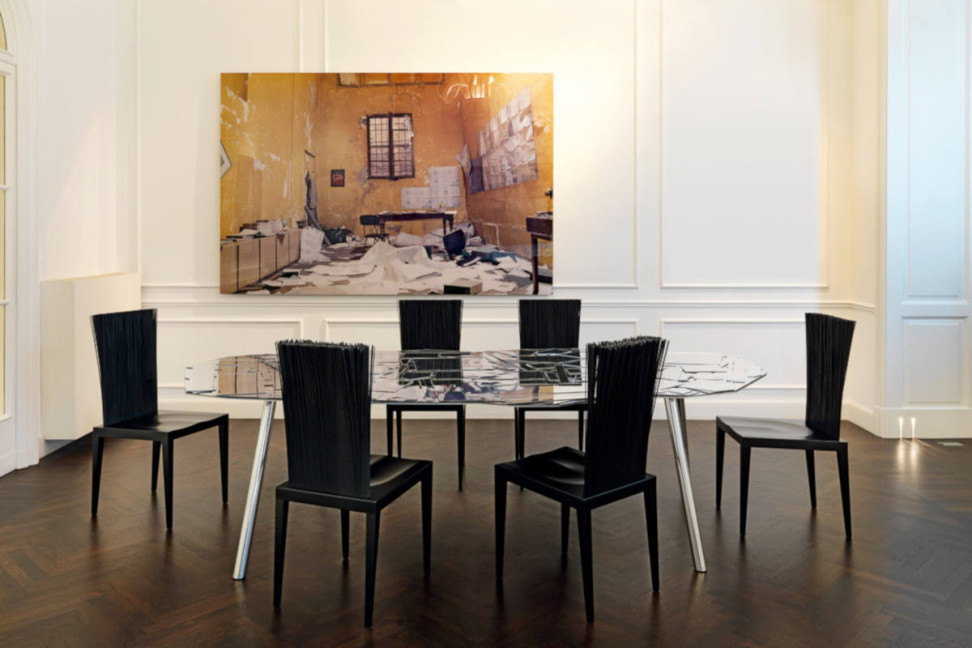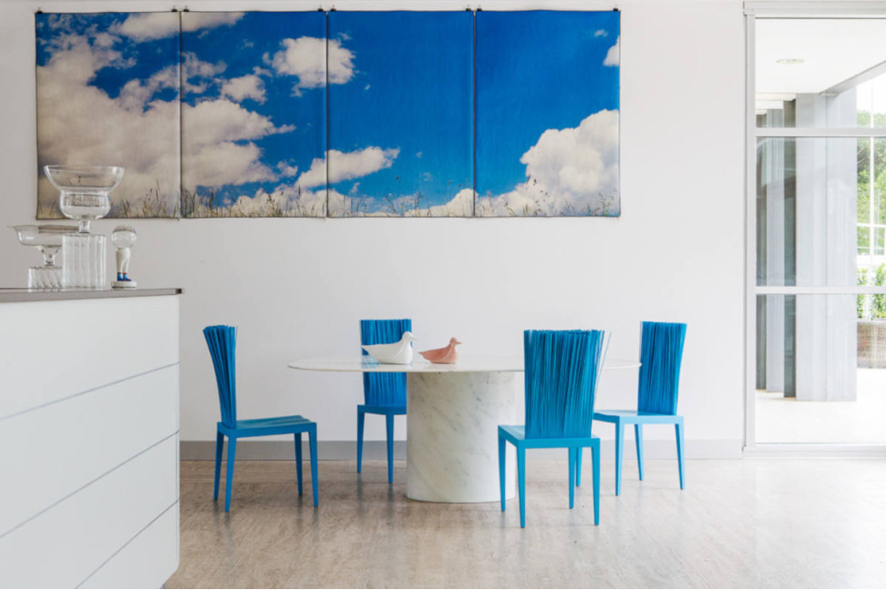 La chaise Jenette, dessinée par Fernando et Humberto Campana pour Edra, est un objet léger qui reflète dans son design la fluidité du métal. Le dossier haut et fin en métal est recouvert d'environ neuf cents tiges flexibles, réalisées en tige de PVC rigide, offrant à la fois confort et impact esthétique surprenant. Avec son aspect éthéré et sa structure résistante, Jenette est parfaite comme chaise de salle à manger ou comme siège scénographique dans des contextes contemporains et éclectiques.