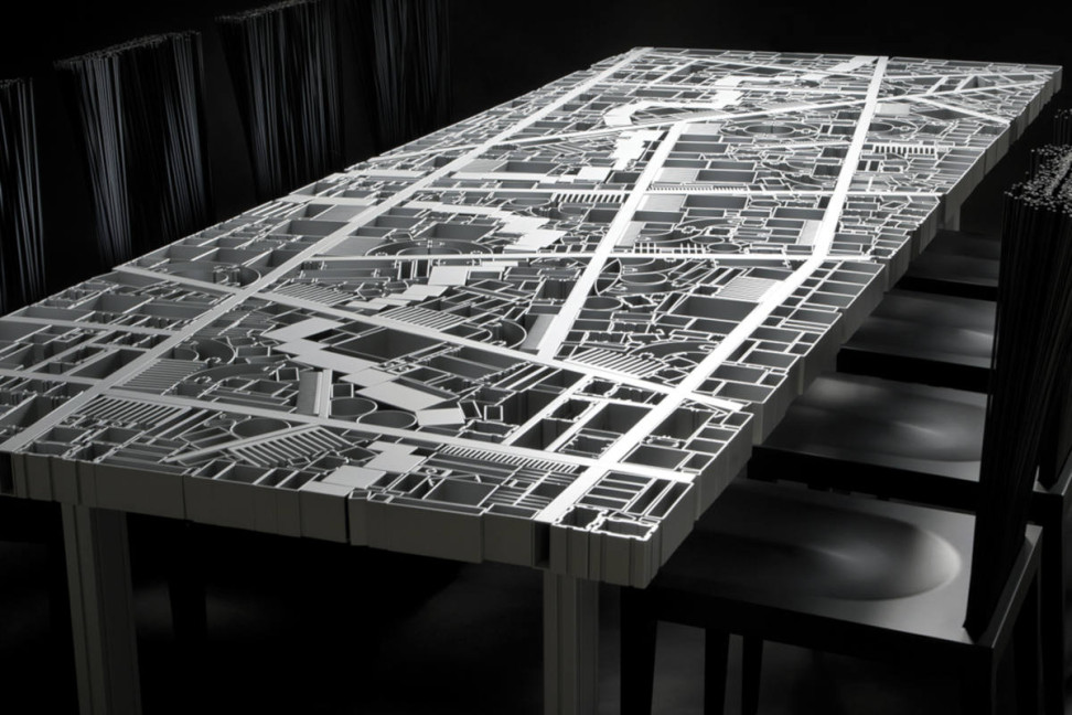 La table Baghdad est l'œuvre créative du designer Ezri Tarazi inspirée par la planimétrie de la capitale irakienne, réalisée par Edra, entreprise leader du design made in Italy.