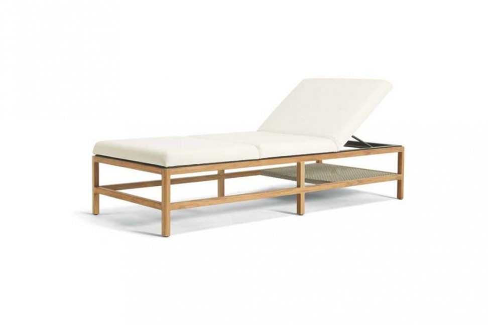 Fabriqué avec des matériaux de haute qualité, le lit de Grand Life de Ethimo signé Christophe Pillet est construit en teck, avec une âme en métal pour garantir sa solidité et sa robustesse, et enrichi de détails en corde acrylique tressée imitant le rotin naturel, offrant un aspect chaleureux et accueillant. La ligne épurée et moderne du Grand Life se distingue par sa structure solide et confortable, conçue pour garantir un maximum de détente. Les coussins, rembourrés et recouverts de tissus déperlant et résistants aux rayons UV, ajoutent un niveau de confort supplémentaire, rendant le lit idéal pour le bord de la piscine, une terrasse ensoleillée ou un jardin élégant.