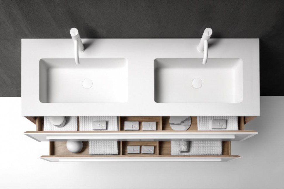 Le meuble 7.0 appartient à la collection éponyme marquée Métrica pour la célèbre marque Falper. Caractérisé par une attention exemplaire aux détails, ce meuble se propose comme une solution innovante pour les salles de bain de petites et moyennes dimensions. 7.0 dispose de portes blanc mat et gris pluie, avec des intérieurs et des tiroirs en orme.Falper