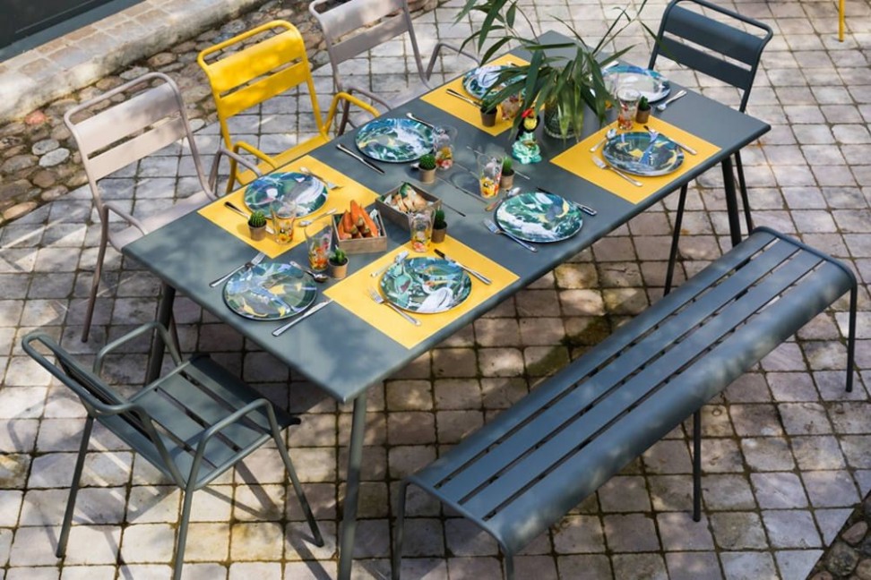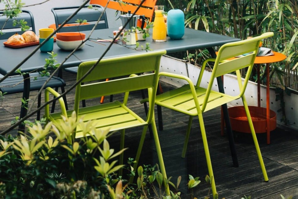 Fermob réalise la structure en acier laqué et offre la possibilité de choisir parmi de nombreuses couleurs vives.
