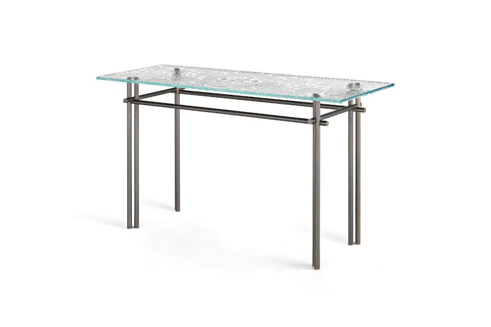 La table Cristaline est disponible dans les dimensions suivantes : cm.147x37x75h.