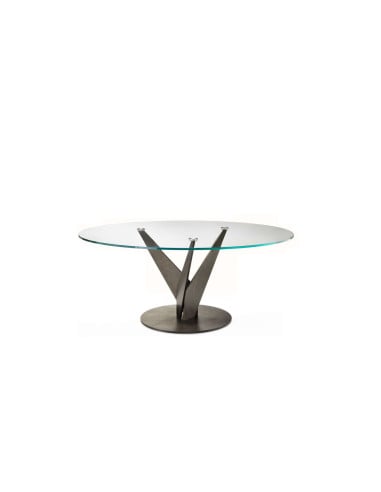 La table Epsylon de Fiam, conçue par le designer Fabio Di Bartolomei, est une table ronde avec une structure en métal et un plateau en verre. Ce pièce allie l'élégance du verre à un design qui résiste à l'épreuve du temps.