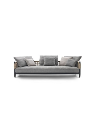 La structure en bois massif a une ligne simple et linéaire, animée par le tressage fait à la main, disponible en corde ou en cuir, qui parcourt les accoudoirs et le dossier. Les coussins sont extrêmement doux et accueillants grâce au rembourrage en fibre de polyester et peuvent être recouverts de tissu ou de cuir, entièrement déhoussables. La ligne Parker propose des canapés deux ou trois places auxquels s'ajoute un pouf polyvalent.
