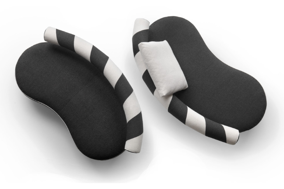 Le canapé Supermax présente une structure en métal tubulaire plus basse que la version originale, favorisant une assise plus détendue. L'assise conserve la forme classique en haricot mais avec des dimensions plus larges et un rembourrage plus volumineux, améliorant ainsi le confort.