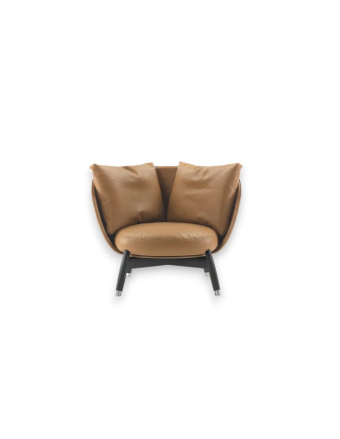 Le geste de relever élégamment le col d'une veste est l'image qui a inspiré le design original du fauteuil Eri. Les pieds du siège sont en bois fini à la main et soutiennent une coque rembourrée qui structure le fauteuil. La qualité des rembourrages de Eri est un facteur déterminant pour établir le niveau élevé du produit, apprécié non seulement pour son esthétique saisissante mais aussi pour sa fonctionnalité indiscutable.