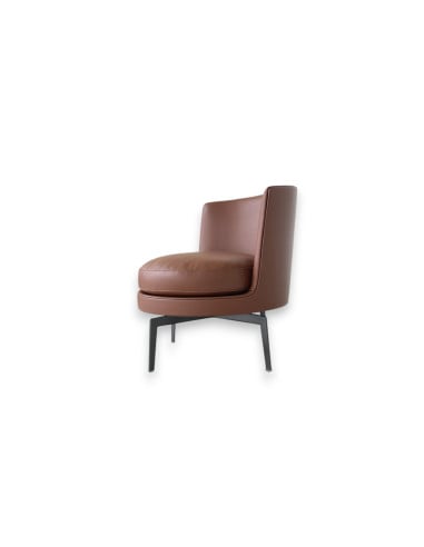 Le fauteuil Feel Good en offre expo dans notre showroom est la version en cuir de couleur marron, dotée d'un système pivotant et d'une base en métal brunie. Cette version spécifique est appréciée pour la teinte chaude du cuir sélectionné et le style classique.