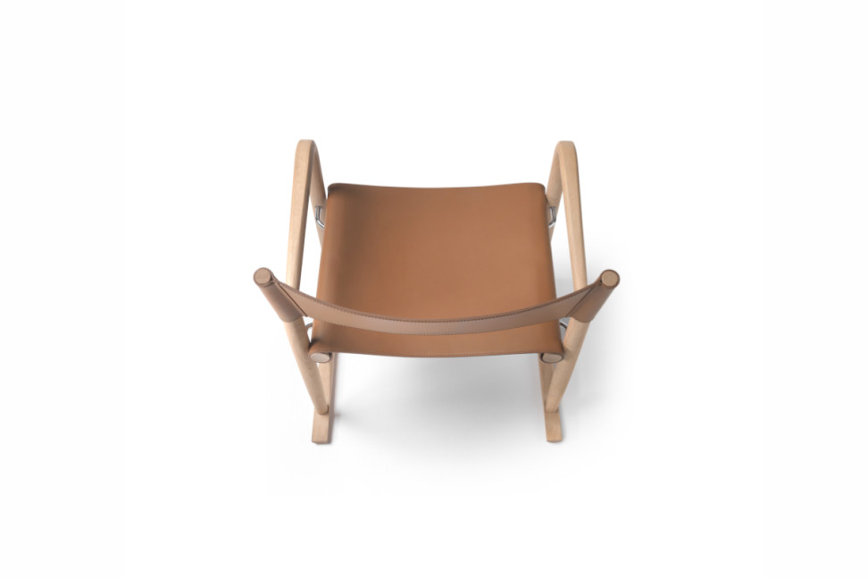 Caractéristiques Techniques: Structure en bois massif, tournée et finie à la main pour mettre en valeur son caractère artisanal. Les éléments de fixation, tels que les vis et les joints, sont en métal, tandis que les articulations du mécanisme pliable sont en zamak moulé sous pression, un alliage résistant et précis. Assise et dossier en cuir. La base repose sur des embouts en matière thermoplastique, conçus pour protéger le sol et assurer la stabilité.