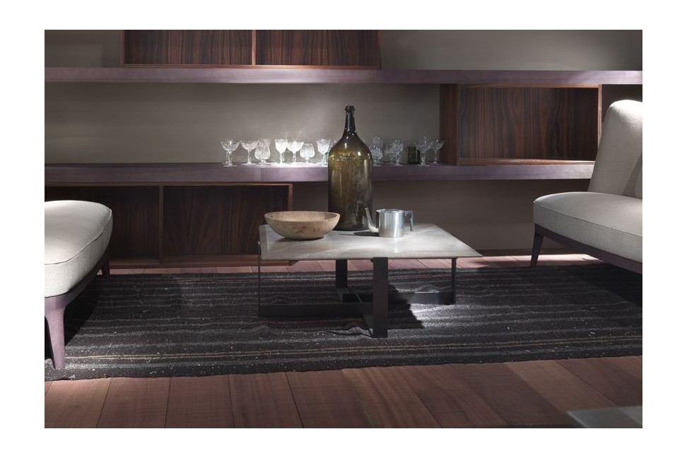 Jacques est un table basse produit par Flexform Mood. Il est réalisé avec une base en métal particulière et un plateau en marbre.