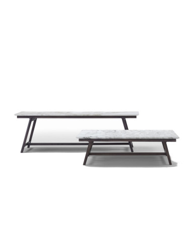 Le table basse da salotto Giano di Flexform a une forme rectangulaire et est caractérisé par des lignes épurées et simples, avec un style contemporain, composé d'une structure en bois massif et d'un plateau disponible en bois et en marbre, dans une large gamme de finitions.