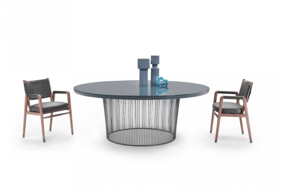 Cette table est caractérisée par un piètement en métal, visuellement léger et minimaliste. La base, composée de fines tiges en métal, est disponible dans les finitions satinées, chromées, chrome noir, brunie et couleur canon de fusil. La table Berry de Flexform est proposée avec un plateau circulaire en trois tailles, en bois plaqué dans de multiples finitions, ainsi qu'en laqué dans diverses couleurs.