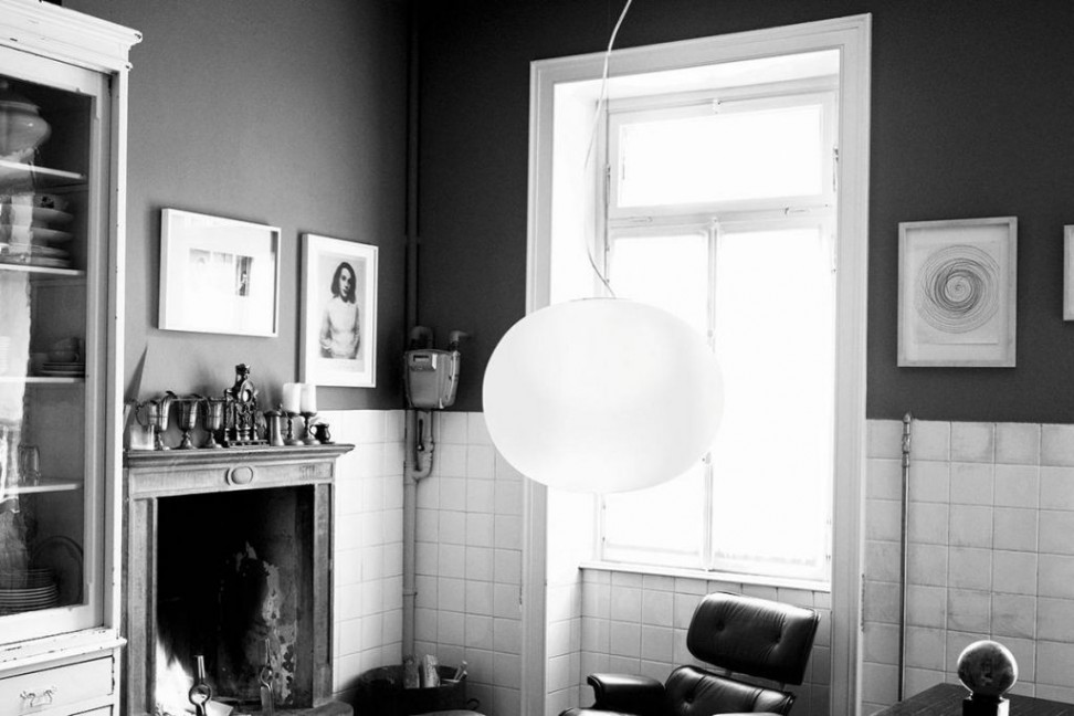 La lampe suspendue Glo-Ball S2 est l'un des produits signés par la marque d'éclairage Made in Italy Flos.