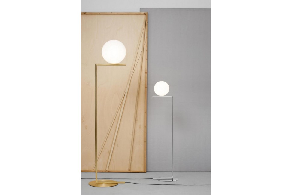 La collection IC Lights est née de la collaboration créative entre le designer anglo-chypriote Michael Anastassiades et l'entreprise italienne d'éclairage de design Flos, connue et appréciée dans le monde entier.En particulier, la lampe sur pied de la ligne présente une structure en C aux lignes nettes et définies, disponible en laiton brossé et peint transparent ou en acier chromé. Le diffuseur, en verre opalin soufflé et de forme sphérique, repose délicatement sur la partie supérieure du cadre, donnant presque l'impression d'être en équilibre sur celui-ci. La collection comprend également la version sur pied plus petite, la lampe murale, au plafond, suspendue et la lampe de table.