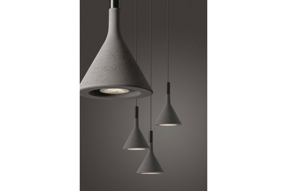 Aplomb se distingue par sa structure en béton au style moderne et original, dont les lignes simples et pures allègent la solidité du matériau, rendant la lampe visuellement légère et délicate. La lampe suspendue est dotée d'une lumière directe et ponctuelle et peut être utilisée seule ou en combinaison avec d'autres éléments de la ligne pour former des compositions personnalisées, adaptées à des environnements domestiques ou contractuels. Le diffuseur est disponible en six couleurs différentes, tandis que le rosace en métal galvanisé recouvert d'ABS et le câble sont réalisés en couleur noire ou blanche (uniquement pour la version avec diffuseur blanc).