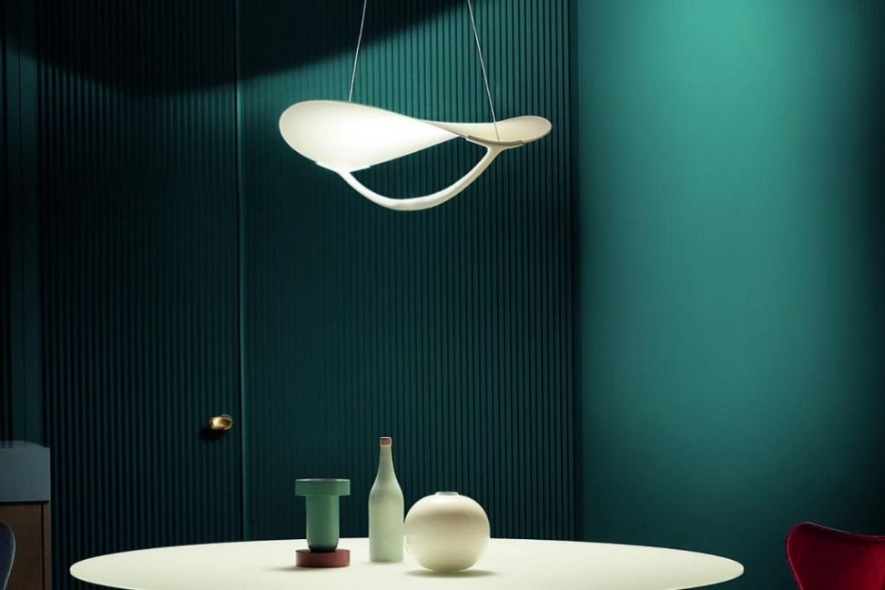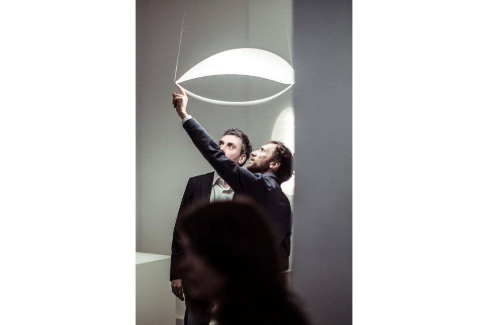 La lampe suspendue Plena naît de la collaboration entre les designers Eugenio Gargioni et Guillaume Albouy et l'entreprise italienne d'éclairages de design Foscarini.