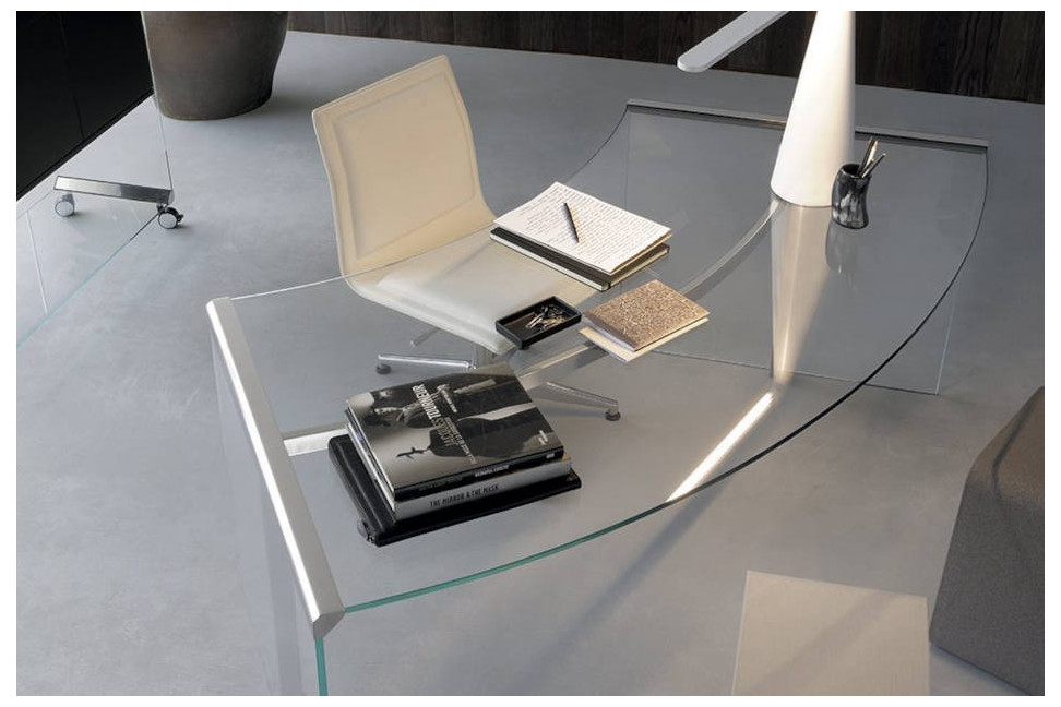Le bureau President, réalisé par Gallotti&Radice sur des projets de Studio G&G, est un complément pour l'espace bureau d'un grand effet et élégance, réalisé en cristal transparent trempé. Les parties métalliques sont en acier inoxydable poli. Sur demande, il est possible d'avoir l'acier inoxydable dans la version satinée, en laiton poli, satinée ou laquée blanche ou noire gaufrée. Les dimensions et les possibilités de composition sont multiples et pour permettre le passage des câbles, il est possible de demander un perçage dans le plateau. En 2021, Gallotti&Radice propose la version President Gold Edition, en deux dimensions différentes, en cristal extralight avec verre trempé et peint dans la finition exclusive "crisscross gold".