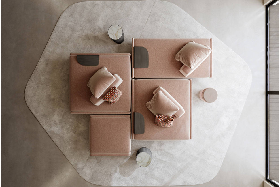 Lilas Mosaïque, signé par Dainelli Studio pour Gallotti&Radice, est un système de sièges qui offre de nombreuses possibilités compositionnelles.