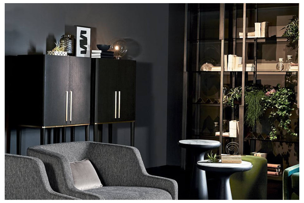 Le conteneur Tama, conçu par Carlo Colombo, est un complément adapté à tout type d'environnement, idéal également comme meuble bar. Gallotti & Radice réalise le meuble Tama en frêne laqué noir, enrichi de détails en laiton satiné, des matériaux de très haute qualité qui reflètent les valeurs de l'entreprise italienne.