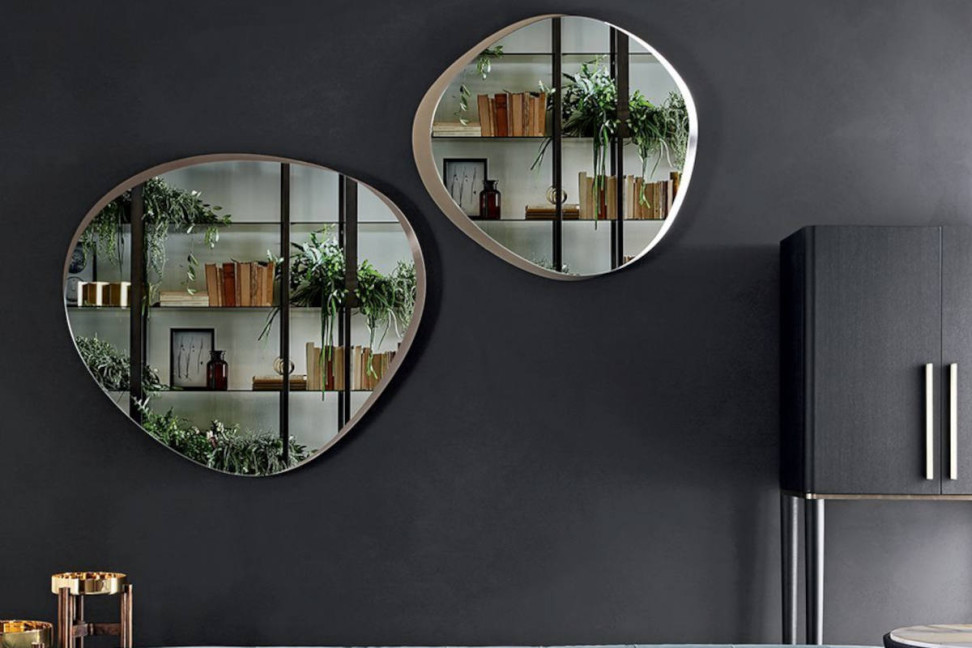 Le meuble conteneur Tama se caractérise par un intérieur revêtu d'un miroir “gris Italia” gravé, une particularité qui lui confère élégance et originalité.