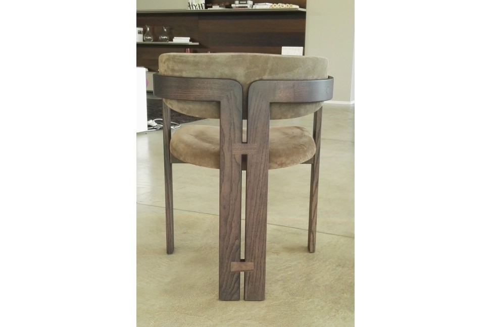 La petit fauteuil 0414, en offre expo dans notre showroom, est un élément extrêmement polyvalent qui contribuera à enrichir votre salon. La structure est réalisée en frêne teinté tabac avec une assise et un dossier recouverts de doux cuir suédé couleur sable.