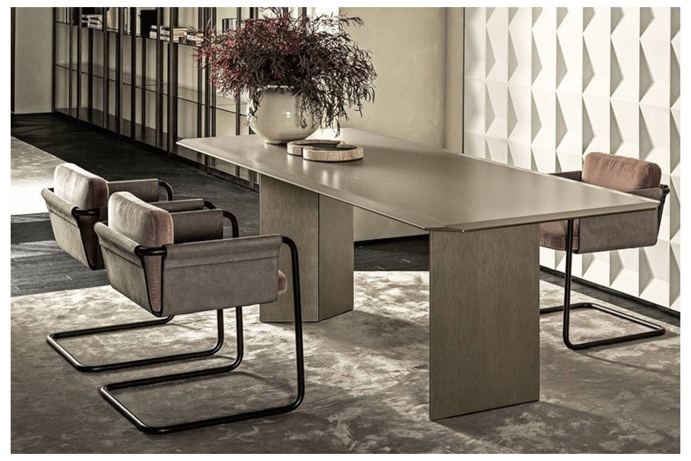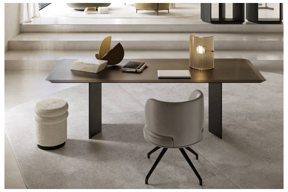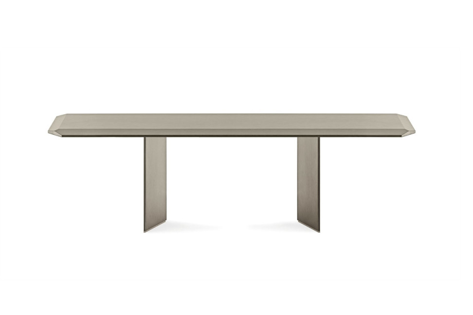 Les designers Oscar et Gabriele Buratti, auteurs de l'ensemble de la ligne, ont donné forme à des éléments de mobilier dont la sobre élégance leur confère un charme intemporel. En particulier, la table Dolm Plus, frappe par sa présence matérielle imposante et par le soin apporté à chaque détail, créant un élément de mobilier unique et d'un impact visuel indiscutable. Dolm Plus, disponible en différentes tailles, est composé d'un plateau avec des angles biseautés en cristal peint dans la finition exclusive brossée Cashmere, tandis que les bases sont en bois recouvert de cristal peint trempé.