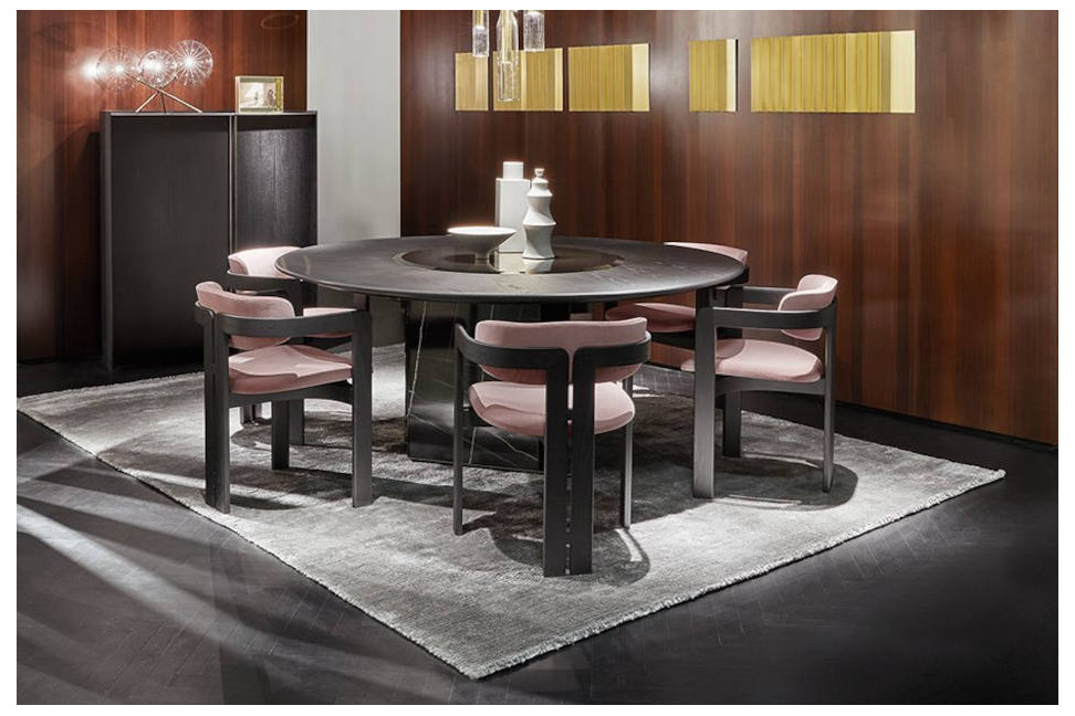 Platium Round est en effet l'un des produits les plus appréciés, présentés par l'entreprise Gallotti&Radice, l'une des marques italiennes les plus réussies dans le secteur du mobilier de design Made in Italy et qui porte la signature des frères Buratti. La table se distingue par ses lignes élégantes et par l'association de différents matériaux précieux ; Platium Round est réalisée avec une base en marbre Sahara Noir embellie également par un plateau au sol en acier inoxydable poli "supermirror" et un plateau en frêne brossé teinté noir valorisé par un plateau tournant en cristal rétrovernissé noir brillant. Le travail du cristal est l'un des points forts de l'entreprise italienne depuis les années soixante et c'est justement ce détail qui rend la table un complément de mobilier unique en son genre.