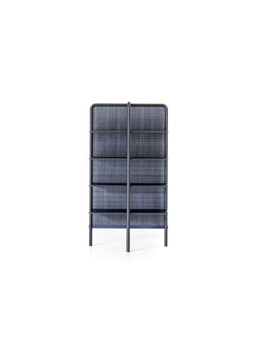 La bibliothèque est caractérisée par une structure solide en frêne, avec des étagères en MDF laquées en trois teintes différentes : Date, Blueberry et Ginger. Le dos de la bibliothèque est revêtu en simili cuir Vibes, un matériau hydrofuge et lavable, disponible en trois nuances différentes : Azul, Moreno et Arena.