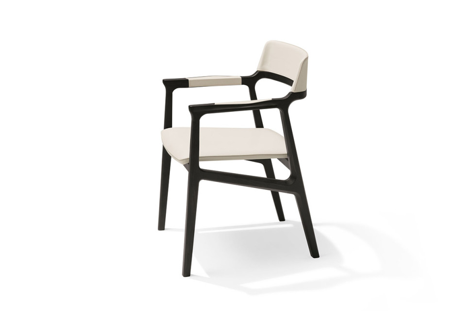 Disponible en deux modèles, avec et sans accoudoirs, la chaise Alexa de Giorgetti présente une structure en frêne dans différentes finitions, tandis que l'assise, le dossier et, le cas échéant, les accoudoirs sont revêtus de cuir. L'assise peut également être recouverte de tissu.