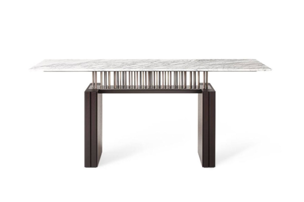 Faisant toujours partie de la collection G-Code signée par Dante O. Benini et Luca Gonzo pour Giorgetti, la console est un élément au fort impact scénographique.