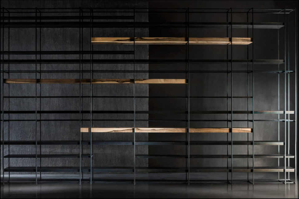 La librairie Cage Layer est le fruit d'un choix formel réalisé par le designer Massimo Castagna et réalisé par l'entreprise Henge.