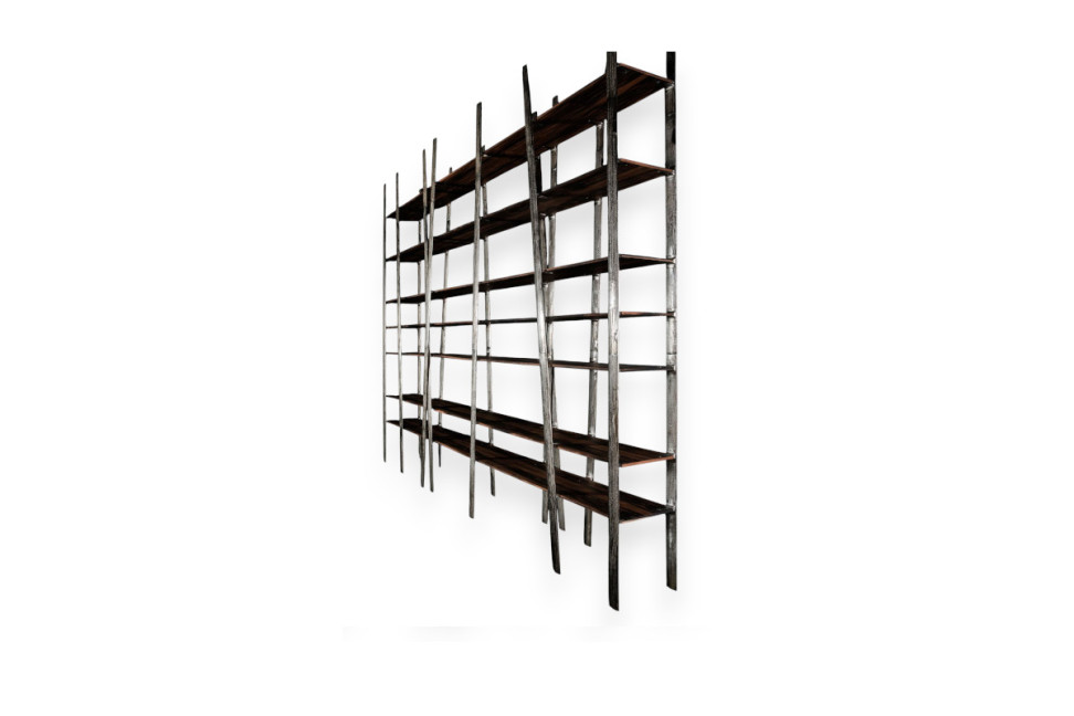 La bibliothèque Web de Henge, conçue par le designer Castagna, se présente avec des montants en titane, tandis que les étagères sont en bois, proposées dans diverses finitions, telles que chêne thermotraité, eucalyptus thermotraité, eucalyptus noir thermotraité, chêne des marais, orme des marais finis à l'huile à base de cire naturelle et d'eau. La bibliothèque Web est prévue pour être fixée au plafond et est disponible en plusieurs dimensions.