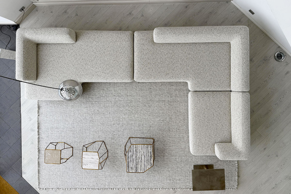 Le canapé Gentle de Henge, conçu par Yabu Pushelberg, frappe d'emblée par sa forme géométrique et enveloppante à la fois. Les lignes sont bien définies, les volumes pleins mais équilibrés: c'est un canapé élégant et confortable, dont le design a été étudié dans les moindres détails. L'assise est profonde, conçue pour accueillir le corps de manière naturelle. Les accoudoirs sont bas et larges, comme de petites surfaces d'appui.