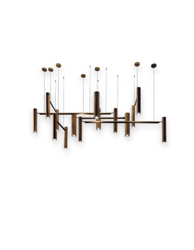 La lampe Tubular Horizontal naît de l'imagination du designer Massimo Castagna qui, en collaboration avec la prestigieuse entreprise Henge, a réalisé une collection de lampes destinées à devenir des icônes de style. La lampe suspendue Tubular Horizontal est composée d'une série d'éléments tubulaires et est disponible en six versions différentes. Henge réalise cette lampe en laiton brunie à la main selon les techniques traditionnelles.