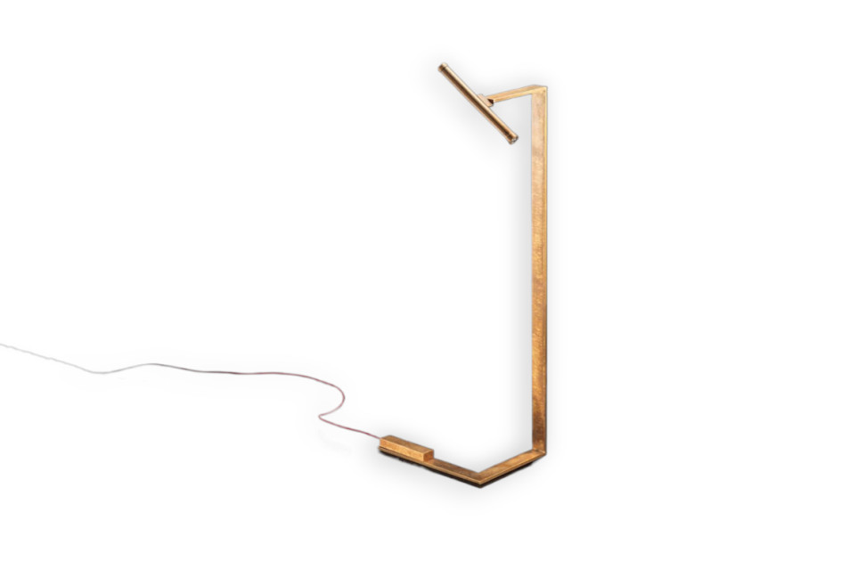 La lampe sur pied Flat, de Massimo Castagna en collaboration avec Hange, joue avec des formes géométriques linéaires et des angles droits, ce qui la rend moderne et élégante. Flat présente une structure en laiton, une lumière multidirectionnelle avec ampoule LED à lumière chaude à faible consommation d'énergie, et un câble d'alimentation tressé, élégamment recouvert de soie rouge. En ce qui concerne la finition, cette lampe est disponible en laiton brun, laiton noir brun, H-silver ou H-Silver noir.