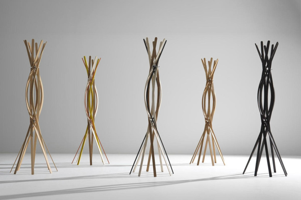 Le projet, signé par le studio Burtscher & Bertolini, est réalisé par Horm, entreprise italienne qui depuis près de 30 ans crée des objets de design uniques en alliant l'imagination des designers internationaux à l'expérience des artisans locaux. Le porte-manteau Twist est composé de huit lattes de hêtre qui s'enroulent et se plient comme si elles dansaient au rythme du twist. Les crochets sont positionnés au centre, de cette manière les vêtements suspendus ne couvrent qu'une partie du porte-manteau, mettant en valeur la magnifique fleur en bois en haut.