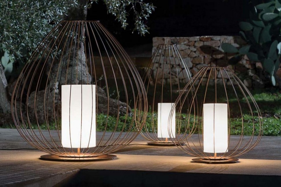 L'auteur Matteo Ugolini, directeur artistique de la marque Made in Italy, a dessiné la forme harmonieuse de ces lampes en s'inspirant de la silhouette des anciennes lanternes chinoises et en les transformant en élégantes cages lumineuses. Au centre de la lampe se trouve une lumière chaude et diffuse qui est protégée par un raffiné abat-jour cylindrique en plexiglass opalin pour la version extérieure, et en lin pour l'intérieur. La collection Cell comprend des lampes de formes et de tailles différentes, constituées d'une structure en fil d'acier inoxydable laqué couleur bronze ou or.