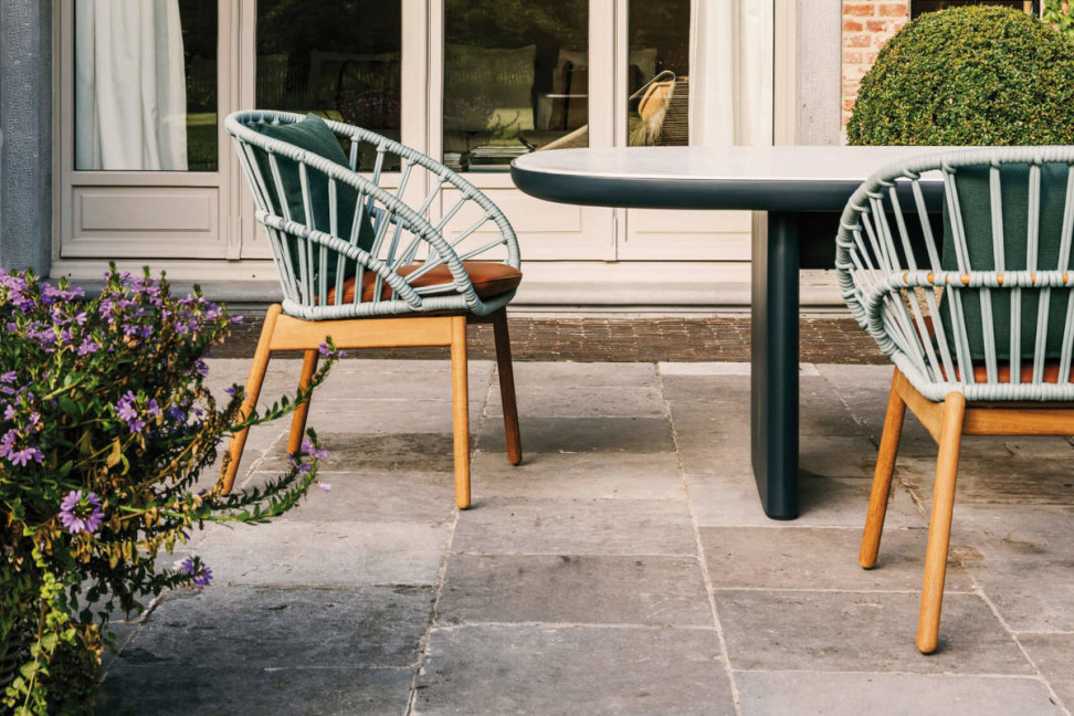 Qu'elle soit utilisée comme chaise de salle à manger pour l'extérieur ou comme un siège pour la simple détente, la chaise Cala de la collection de Kettal, signée Doshi Levien, avec son typique dossier en corde est une fenêtre qui permet une connexion parfaite avec les éléments naturels.