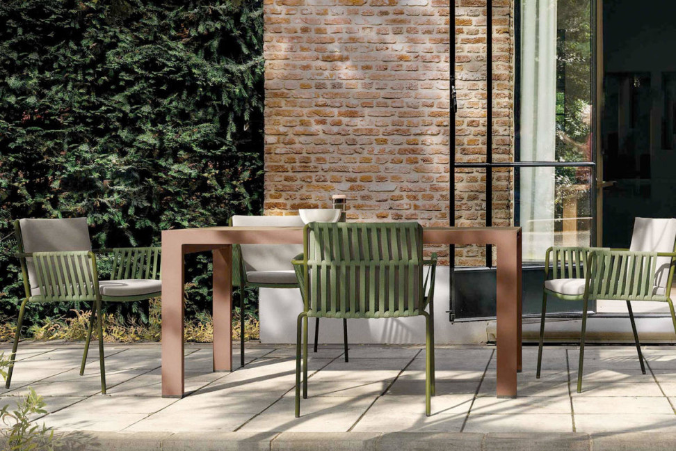 La table d'extérieur Net est produite par Kettal sur projet de la même équipe de designers internes à l'entreprise, Kettal Studio, et présente un design traditionnel caractérisé par des lignes sobres et rigoureuses.