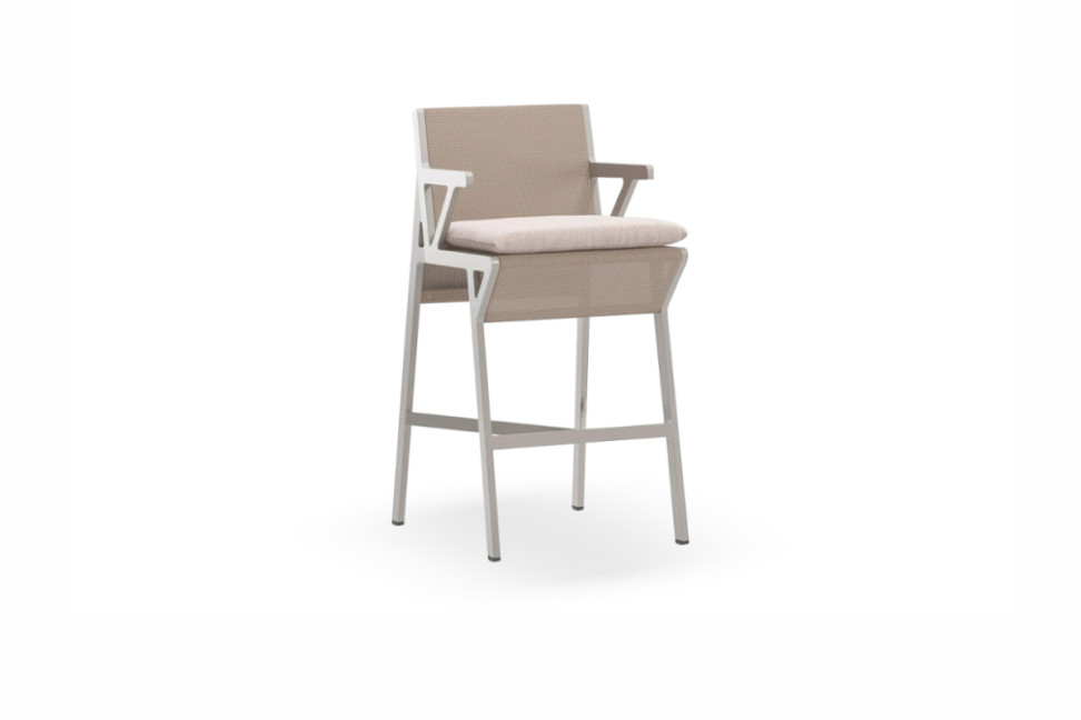 Le tabouret de bar Vieques de Patrici aUrquiola en collaboration avec Kettal, est caractérisé par des lignes nettes et dynamiques, trait distinctif de l'ensemble de la collection. La structure en aluminium est proposée dans une large gamme de finitions disponibles, tout comme les tissus qui forment le dossier et l'assise.