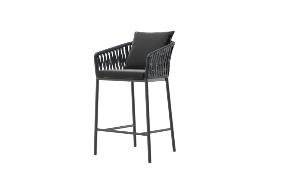 À la collection Bitta de Kettal conçue par Rodolfo Dordoni, appartient le tabouret de bar. Les tabourets de bar Bitta suivent à la lettre le style déjà vu dans le reste de la collection, présentant donc une structure en aluminium peint, des côtés recouverts de corde et des coussins recouverts de tissu d'extérieur. Les tabourets sont disponibles en deux hauteurs différentes.