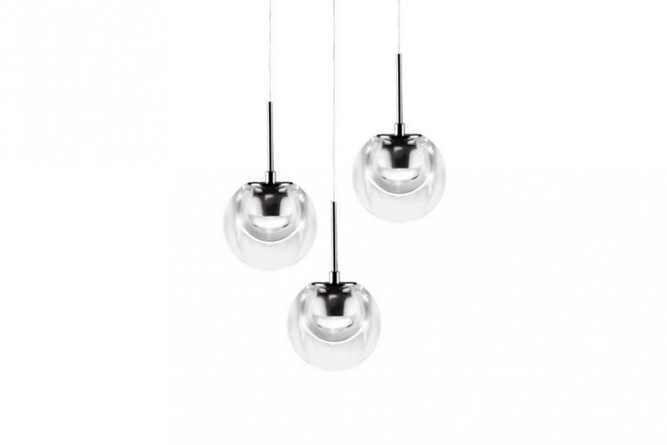 Le designer français Emmanuel Babled, auteur de la lampe, a dessiné les lignes en s'inspirant, comme le nom le suggère, à la forme des gouttes de rosée, à travers l'utilisation d'un diffuseur sphérique en verre fixé au plafond par un câble transparent de 180 cm et un rosace chromé. Le dissipateur en aluminium moulé recrée l'effet de clair-obscur produit par la réfraction de la lumière sur les gouttes de rosée et est relié au fil d'alimentation par une structure tubulaire en métal. Dew est un complément de décoration idéal pour des espaces au style moderne et raffiné, à utiliser comme point de lumière unique ou au sein de compositions scénographiques.