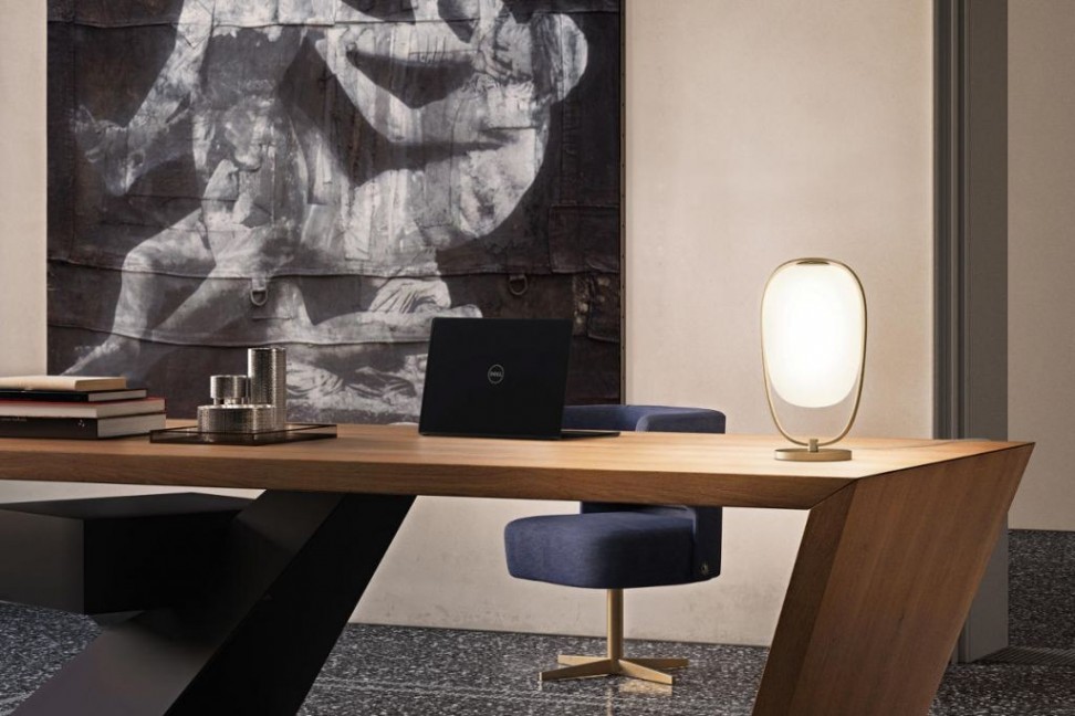 La collection comprend également une version de table, où le diffuseur est placé en haut de la structure, donnant l'impression qu'il est sur le point de s'envoler.